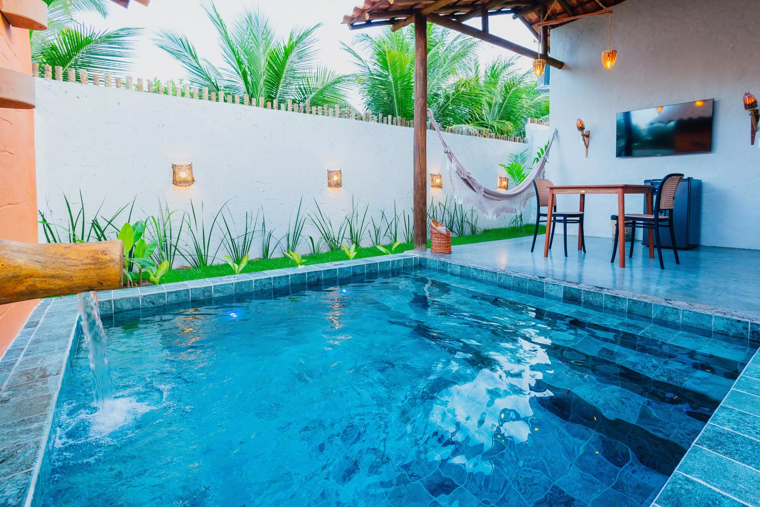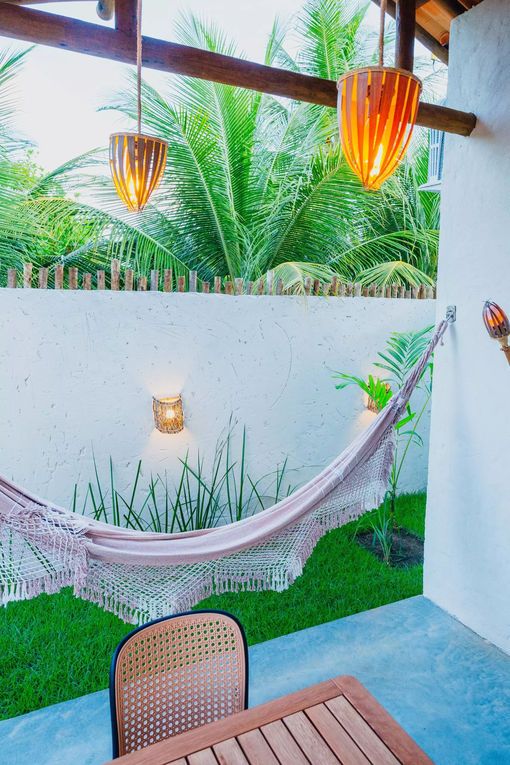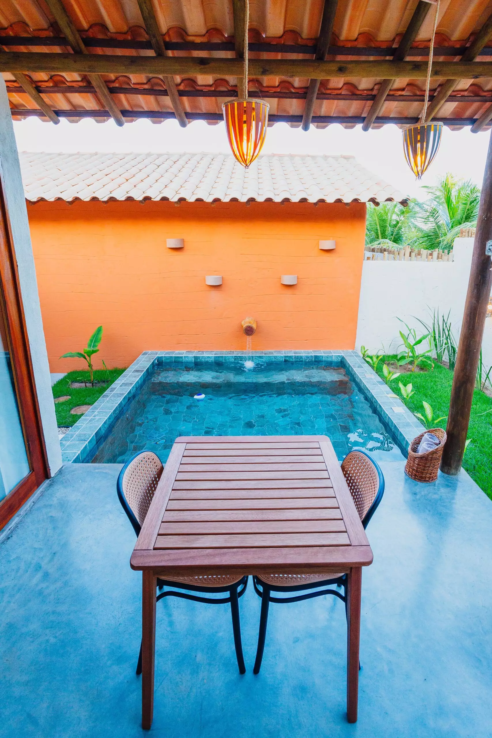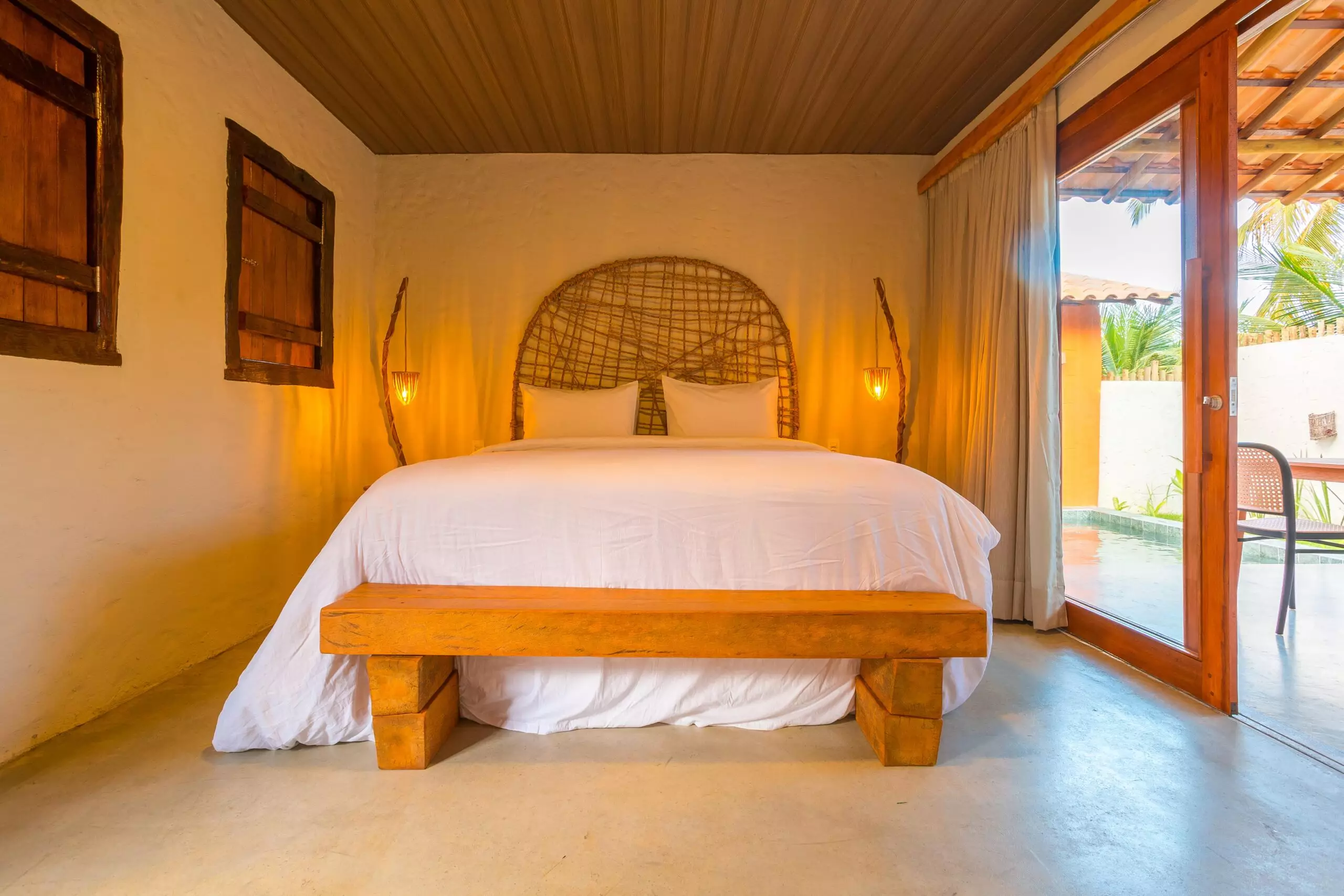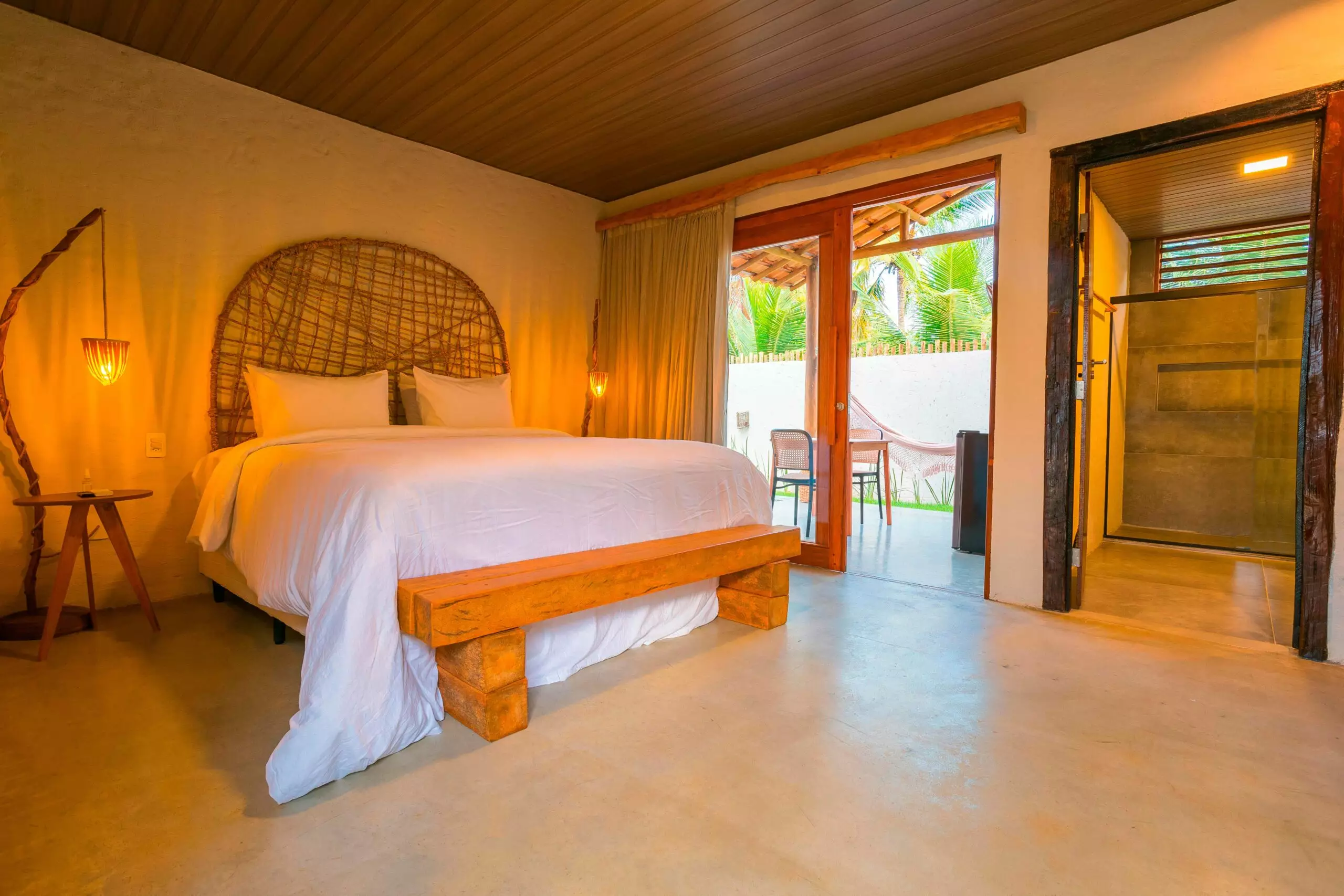 Chalé privativo composto por arquitetura rústica em madeira de demolição e aliado a uma linda decoração artesanal de elementos de palha. Este chalé, além de bastante charmoso, também dispõe de muito conforto distribuído em seus 33 m². Conta com cama king size, smartv 42”, frigobar, split 12 mil btus, wi-fi, chuveiro elétrico e amenities na área interna. Na área externa você vai desfrutar de uma varanda realmente privativa composta com smartv 50”, mesa, cadeiras, rede e piscina privativa.