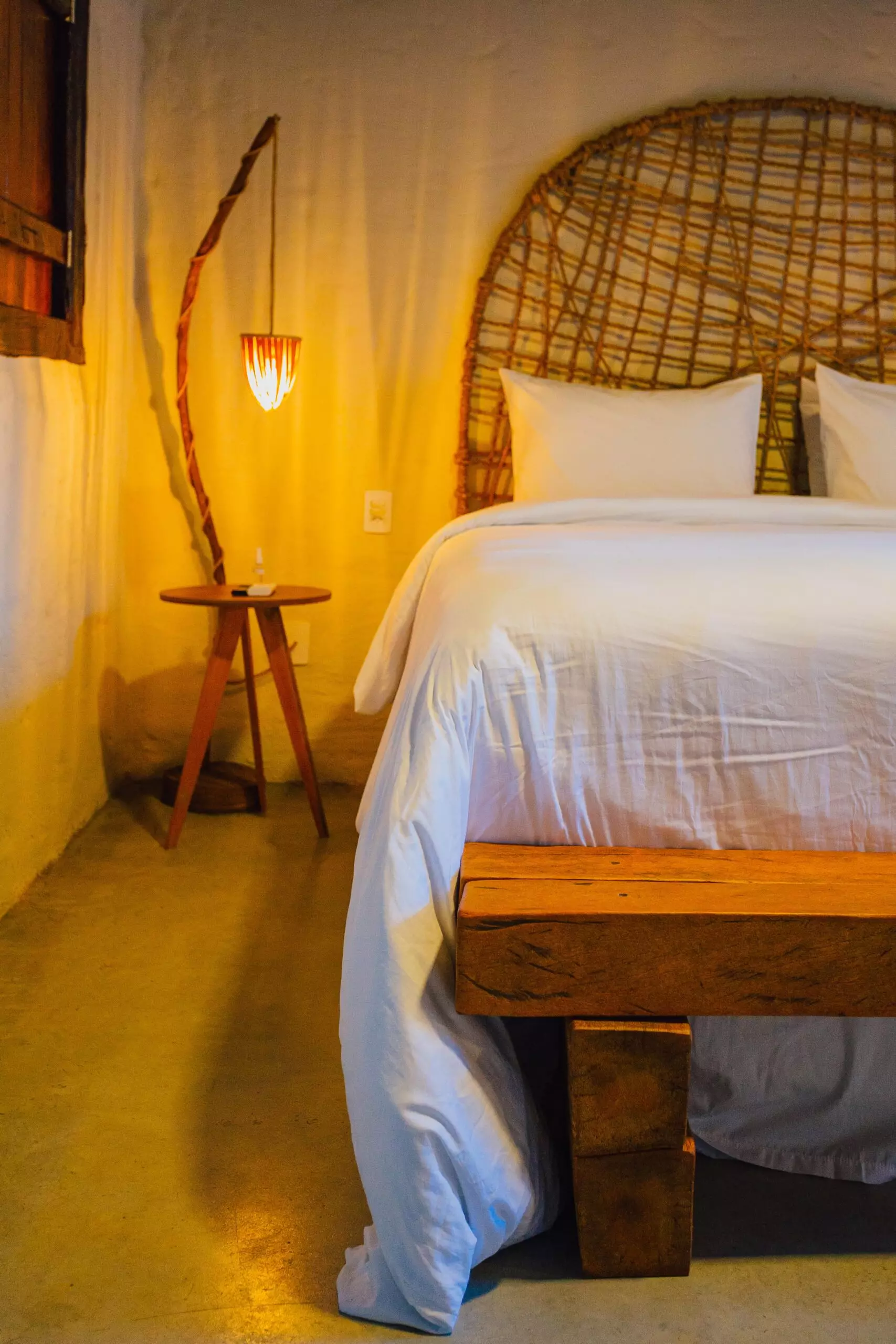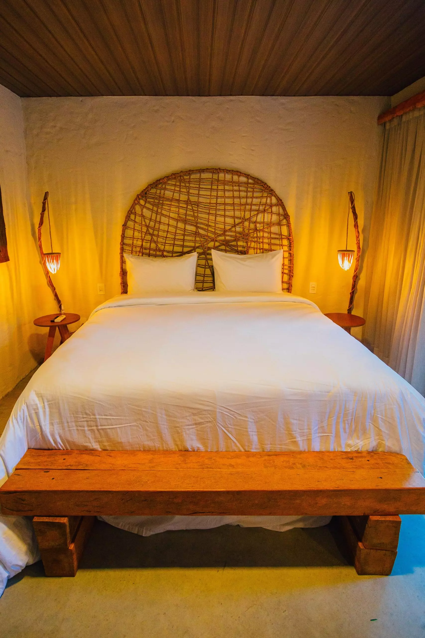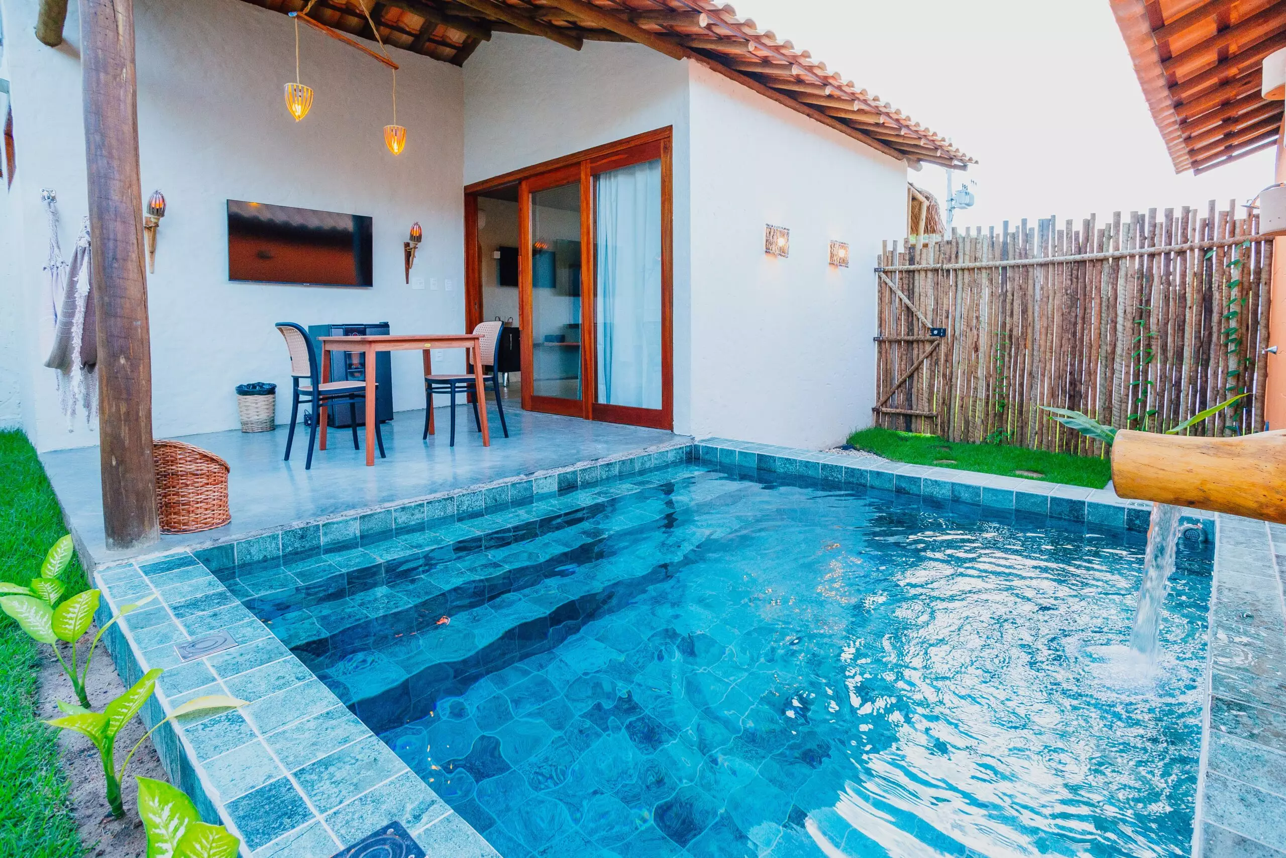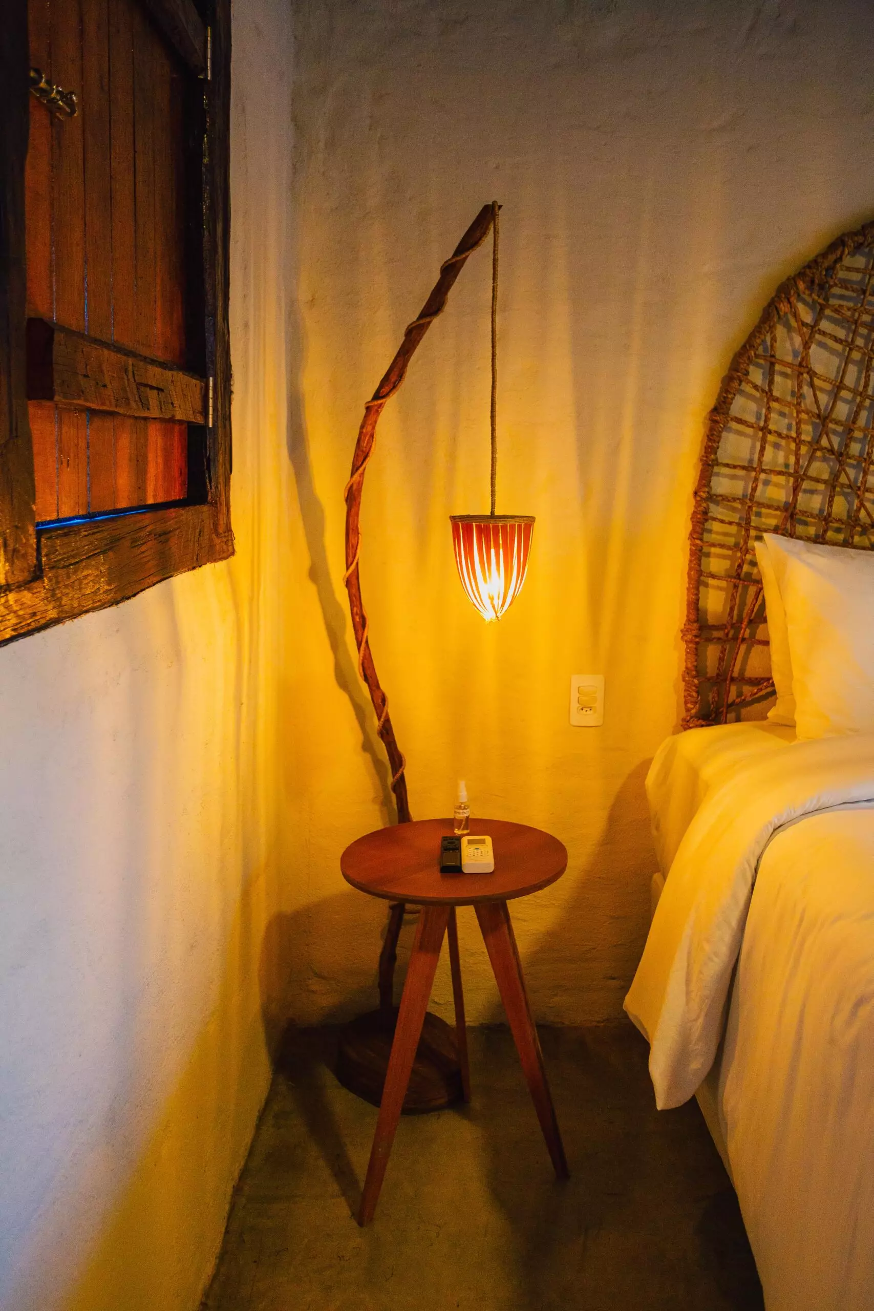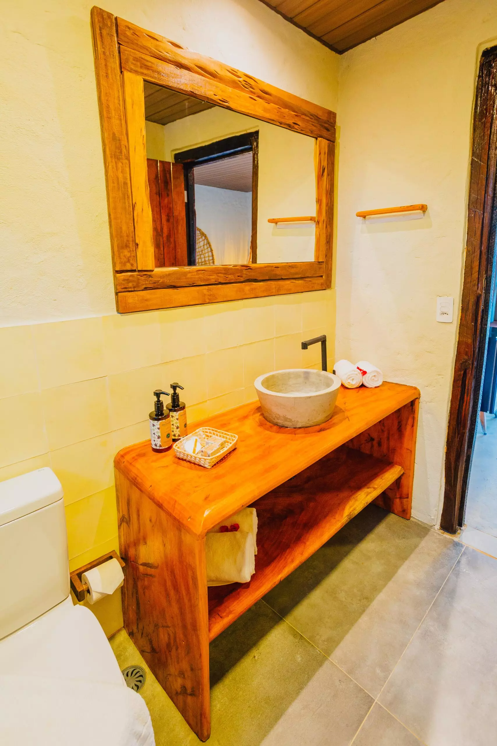 Chalé privativo composto por arquitetura rústica em madeira de demolição e aliado a uma linda decoração artesanal de elementos de palha. Este chalé, além de bastante charmoso, também dispõe de muito conforto distribuído em seus 33 m². Conta com cama king size, smartv 42”, frigobar, split 12 mil btus, wi-fi, chuveiro elétrico e amenities na área interna. Na área externa você vai desfrutar de uma varanda realmente privativa composta com smartv 50”, mesa, cadeiras, rede e piscina privativa.